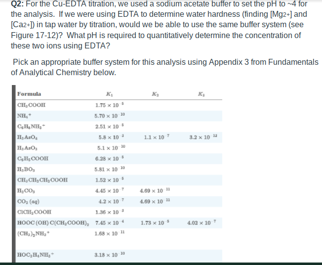 Solved Q2 For The Cu Edta Titration We Used A Sodium Chegg Com